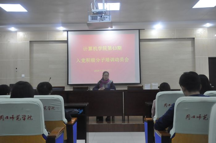 按照我校举办第43期入党积极分子培训班的通知要求,2016年10月27日,计算机学院在综合楼会议室举行第43期入党积极分子培训动员会。团总支书记渠瑞华老师以及19名入党积极分子参加了本次动员会。 首先,渠老师传达了学校关于举办第43期入党积极分子培训班的通知。对自主学习阶段的活动和学习讨论进行了安排,布置了学习内容和目标要求,强调了学习纪律。随后,渠老师结合《大学生入党读本》的主要内容,针对端正入党动机、熟悉党员发展流程等内容,给本批积极分子成员上了一场普及党的基本知识的党课。 党课结束,大家进行了分组讨论学习。在接下来的时间,本期积极分子成员将按照本次培训班通知安排,通过分组讨论、课外自学和开展特色教育活动等多种形式,认真完成学习任务。