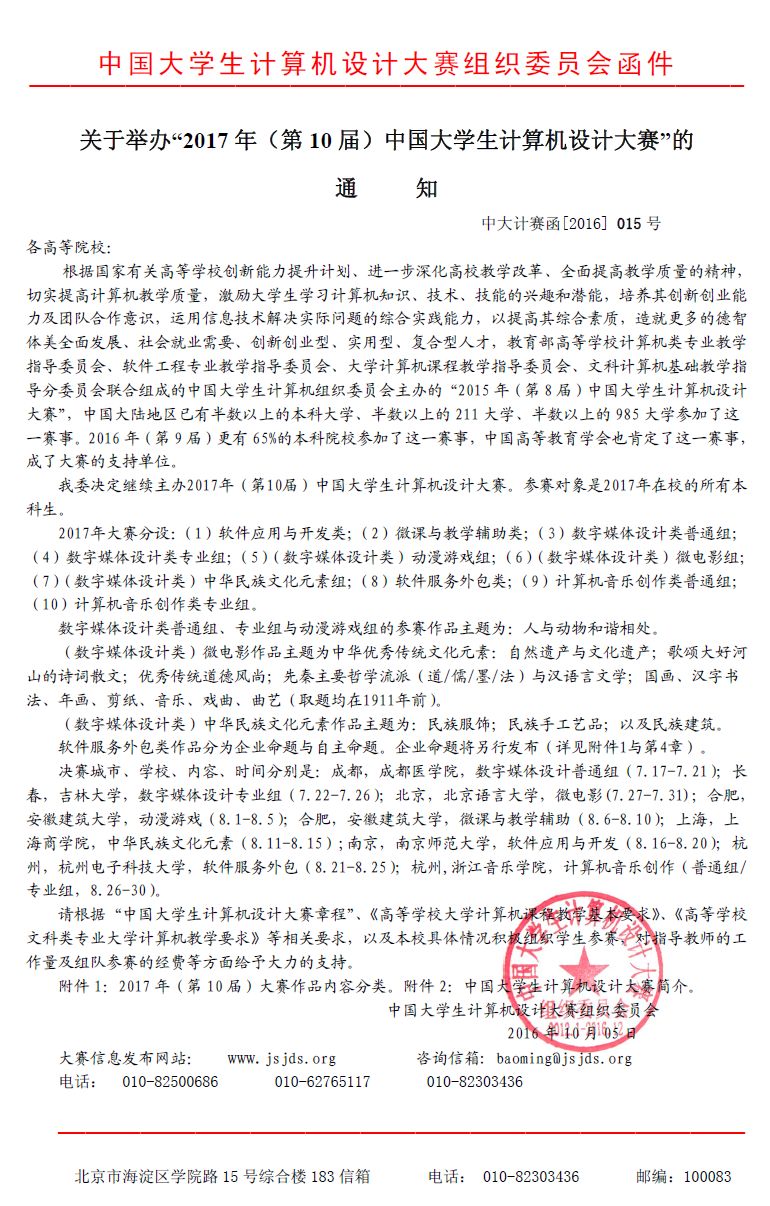关于举办2017年中国大学生计算机设计大赛的通知 |