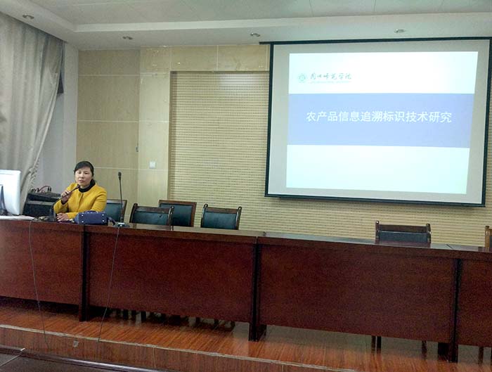 2017年3月28日下午,在综合实验楼425会议室由李骞老师做了题为《农产品信息追溯标识技术研究》的学术报告。报告由董仕博士主持,科研组全体成员参加了报告会。 报告中,李骞老师首先对农产品信息追溯过程中的常用编码标识技术进行了详细讲解,接着介绍了所设计的肉鸡信息追溯编码标识方案和肉鸡生产全过程信息可追溯体系,最后谈了人工神经网络在农产品信息追溯中的应用点。报告后,科研组全体成员对农产品质量安全和农产品信息追溯等问题进行了热烈讨论。针对李骞老师和科研组成员的困惑,董仕博士建议大家多看、多讨论、多思考,依靠团队的力量找准研究方向,将人工神经网络、深度学习等计算机热点引入到自己的学科领域,争取科研取得新突破。