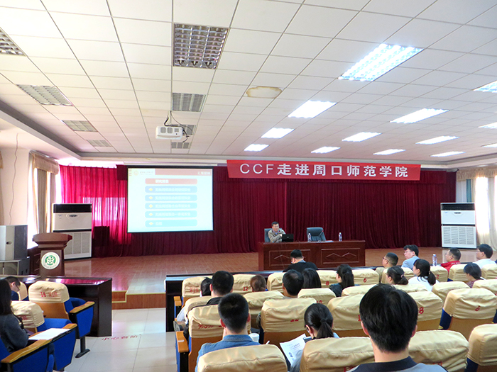 2017年4月26日,“CCF走进高校”系列讲座在周口师范学院举行。CCF理事、教育部长江学者、西安电子科技大学博士生导师马建峰教授一行应邀到我校进行学术交流。计算机科学与技术学院李亚院长、网络工程学院院长朱海热情接待了马教授一行,并向客人简要介绍了学院的学科、科研和实验室建设情况。之后,双方在五楼会议室就“周口师范学院网络与信息安全人才培养建设”进行了座谈。座谈会上,马教授指出人才培养应紧贴学校转型发展工作,做实造势,通过鼓励学生参加各项技能竞赛、与政府和企业产学研合作等多种方式促进人才培养。 紧接着,马教授在第二报告厅作了题为《无线网络融合的安全架构与关键技术》的学术报告。报告会由计算机科学与技术学院院长李亚教授主持,计算机科学与技术学院的300多名师生参加了报告会。报告中,马建峰教授首先分析了传统无线网络给5G、SDN、空天一体化等下一代无线网络所带来的安全隐患,然后针对下一代无线网络融合安全架构,从无线网络融合的网络侧、数据侧和应用侧安全关键技术等方面进行了详细论述,最后勾画了未来无线网络的主要安全机制以及彼此之间的相互关系。马建峰教授深厚的学术造诣引起了在座师生的浓厚兴趣,同时儒雅谦和、幽默风趣的人格魅力,深深打动着现场的每一位师生。