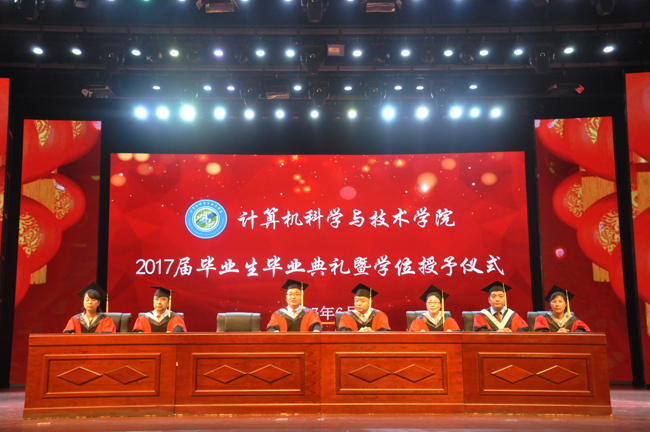 计算机科学与技术学院2017届毕业生毕业典礼暨学位授予仪式于2017年6月9日在至善会堂举行,院学位委员会全体成员出席,仪式由学院党总支副书记李霄主持。毕业典礼暨学位授予仪式在庄严的国歌声中正式开始。