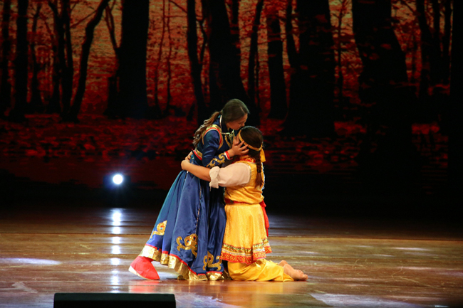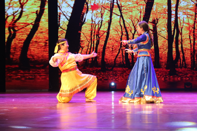 由毕业生同格拉、吕亚洁自编自演的蒙古舞《梦中的额吉》,她们以舞传情,悠远的旋律搭配满腔的深情,歌声直指灵魂,心灵震撼般颤抖;遥远的国度,滋生梦中期盼的眷恋,舞蹈完美地诠释了梦到母亲时的欢愉和大梦初醒时的茫然无措,距家千里兮柔情在心中。
