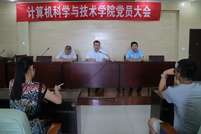 6月13日下午,计算机学院党总支在学院会议室召开党员大会。32名教师党员和31名学生党员参加了大会。大会由党总支书记周文刚同志主持。 大会的主题是“用形式多样的主题党日活动落实‘两学一做’学习教育活动常态化制度化”。首先,周文刚带领大家共同学习了中共中央办公厅印发的《关于推进“两学一做”学习教育常态化制度化的意见》,并重点解读了学校党委印发的《关于推进“两学一做”学习教育常态化制度化的实施方案》,对我院今后一段时间的“两学”和“一做”做出了明确的再强调、再要求。 其次,周文刚指出,今年3月份以来,党中央、河南省委、高校工委、学校党委,分别举行会议下发文件,着力推进“两学一做”学习教育常态化制度化。6月5日,学校党委组织部下发文件,对开展2017年主题党日活动做出了安排。计算机学院党总支结合工作实际,确定在抓好“两学”的基础上,突出“一做”。在学和做的过程中,将形式多样的主题党日活动融入其中,最大限度地激发广大党员的学习热情,从而使学习教育活动重创新、求实效,实现全覆盖、常态化,并将“三会一课”抓在经常、融入日常。 最后,周文刚对“党费工作有关问题”、“发展党员、党员领导干部民主生活有关问题”,依据有关讲话,向广大党员同志做了说明。并对6月底要实施的党组织和党员基本信息采集工作做了相关安排。 此次大会,统一了党员们对今后一段时期“两学一做”学习教育活动的认识,明确了党支部的三会一课、主题党日等学习教育活动的工作要求与形式内容,保障了我院党建工作的扎实推进!
