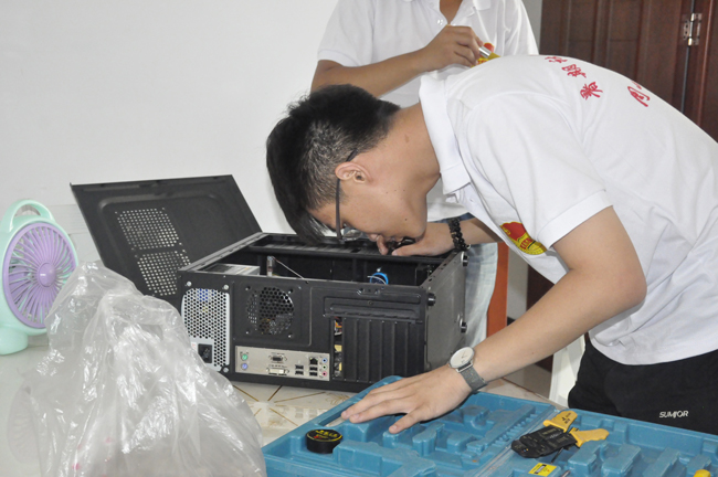 由于电脑配件太多不方便拿上拿下的,加上居民们住的楼层较高,志愿者们主动建议上门进行服务。小心翼翼地拆装机器,仔仔细细地检查每一个细节,志愿者们以一丝不苟的服务态度给居民们奉献出最好最认真的服务。
