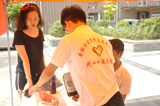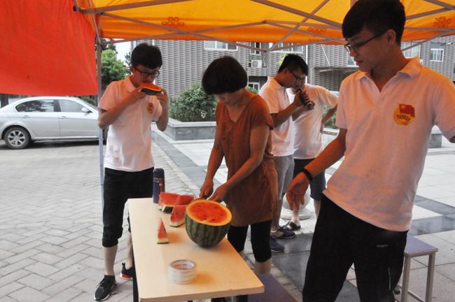 有付出就会有回报,热心的阿姨送来夏天的”避暑神器“——冰镇西瓜,热心的姐姐端来一壶解渴的凉茶。那一刻,似有一阵凉风轻拂过志愿者们的心间,给原本因天气炎热而略显烦躁的内心捎去阵阵凉意,让今年这个夏天好像也变得不再那么的炎热。